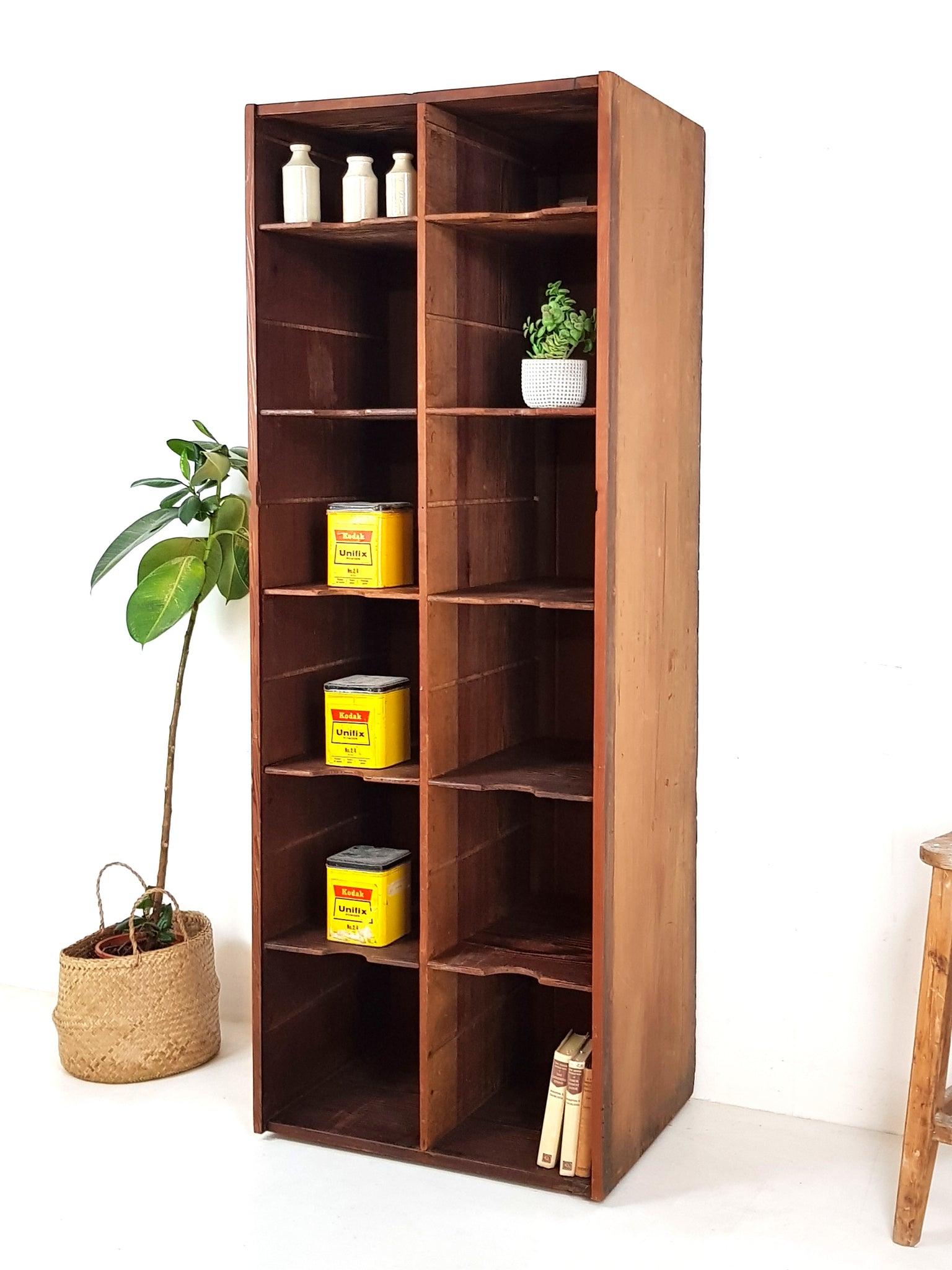 This shelving unit is in good condition, standing solid with no structural problems and no woodworm.