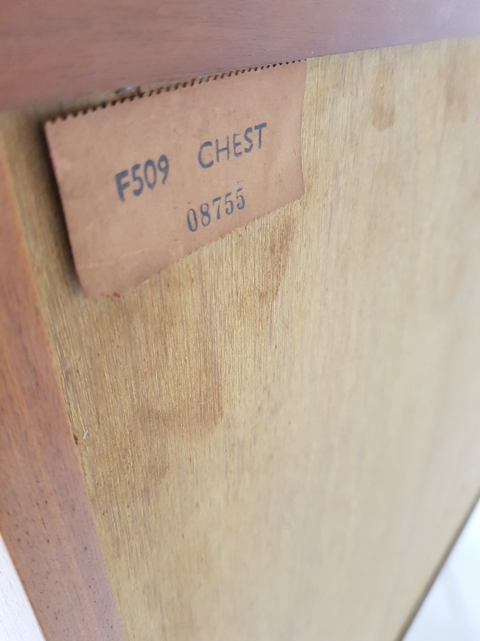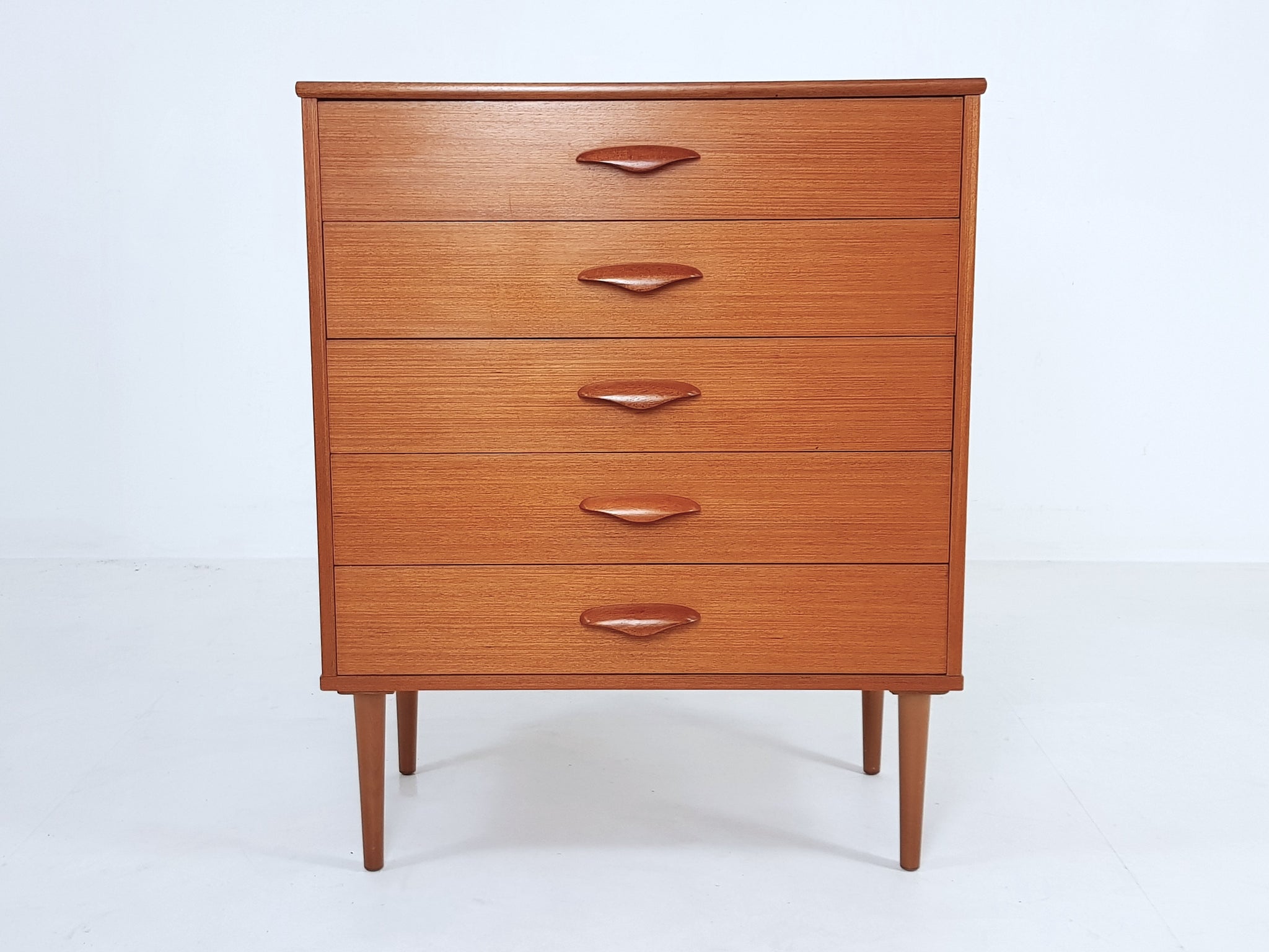 This is a beautiful chest of drawers in light teak with an attractive colour and grain to the wood.