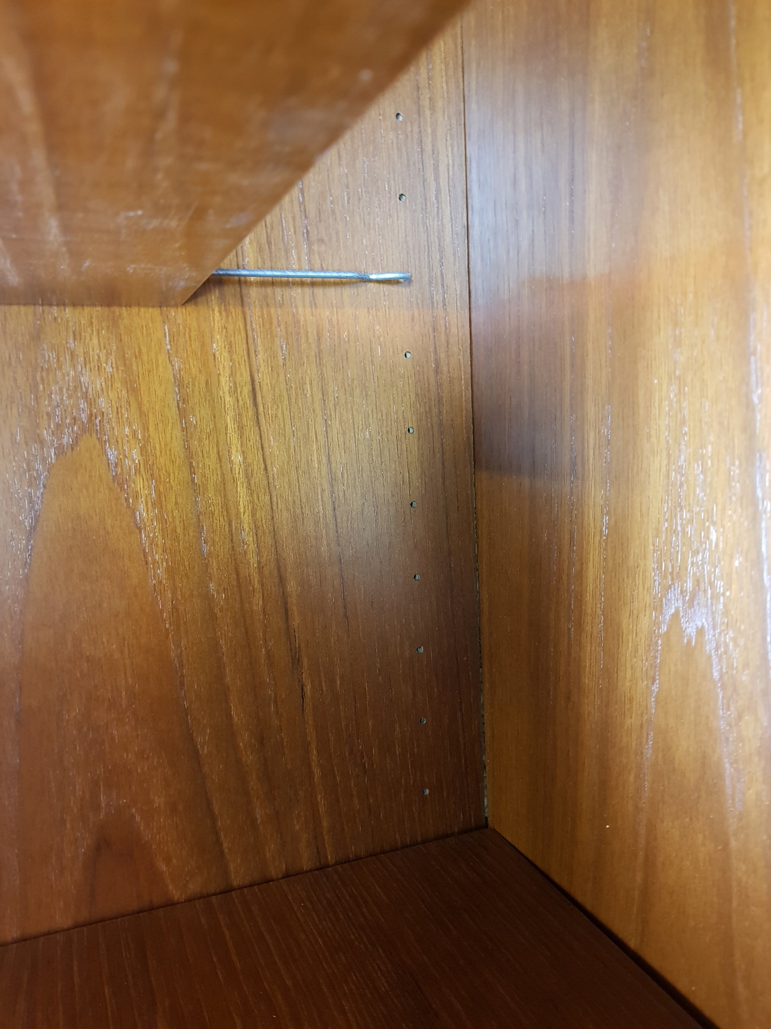 The shelving unit is in good condition, it stands solid with no structural problems and no woodworm.