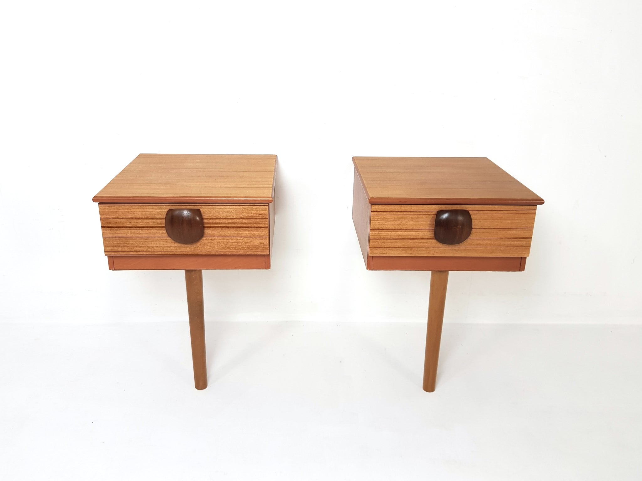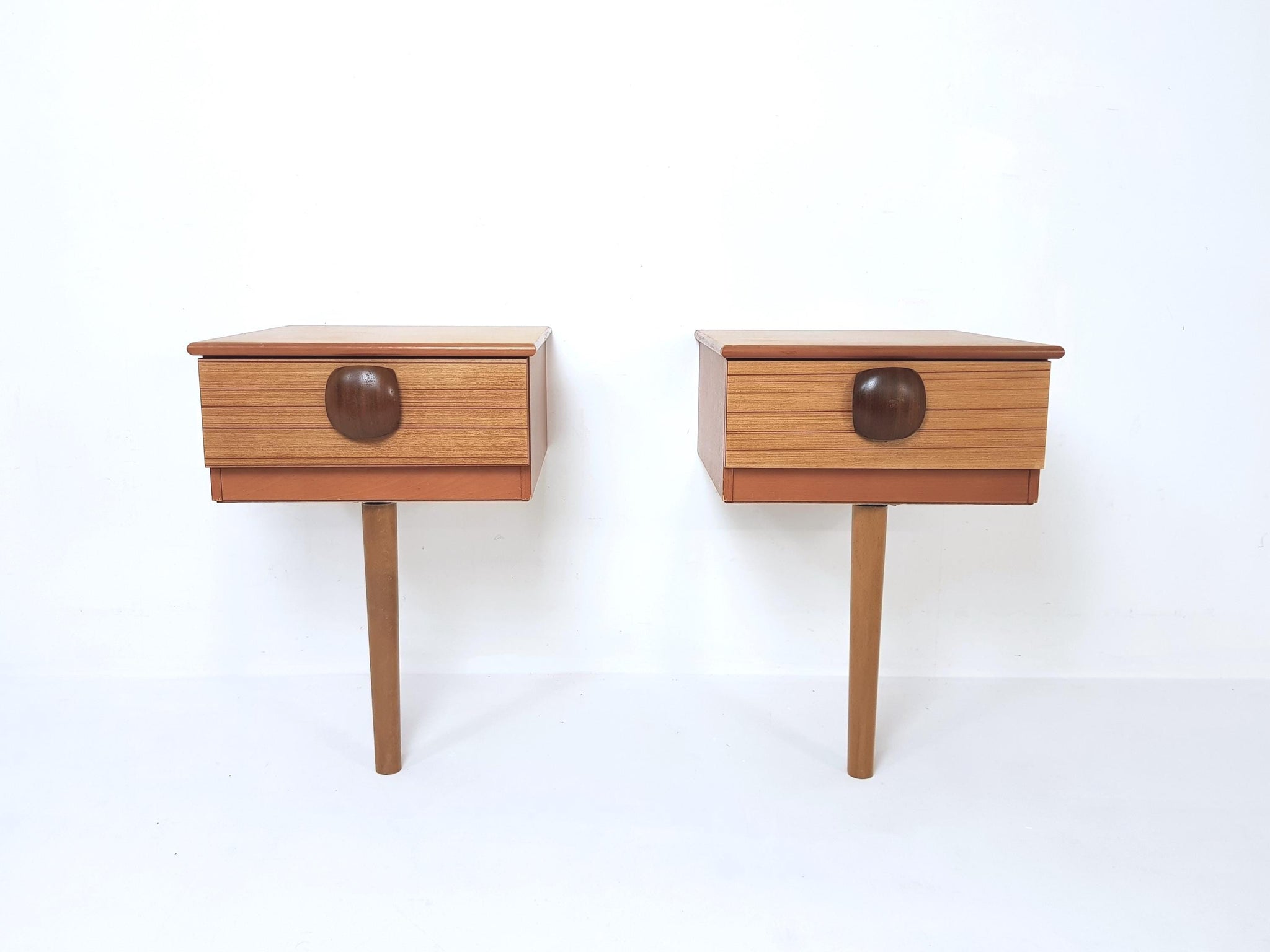 This is an attractive set of two bedside tables with a lovely colour and grain to the wood.