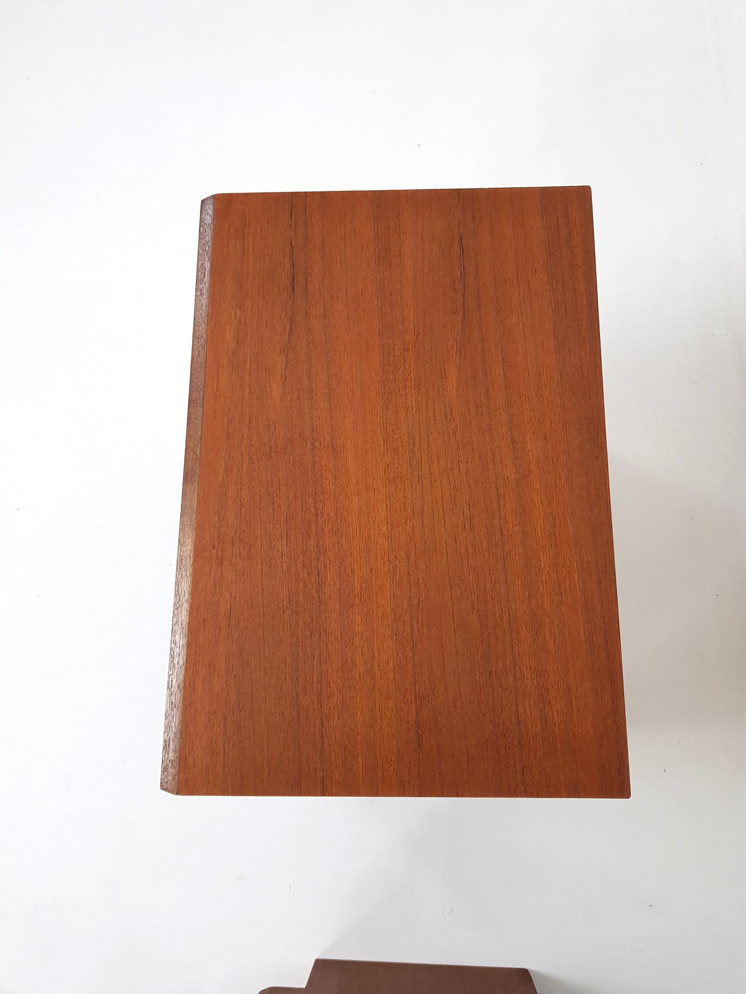 This is a beautiful set of two tables in teak with a lovely colour and grain to the wood.