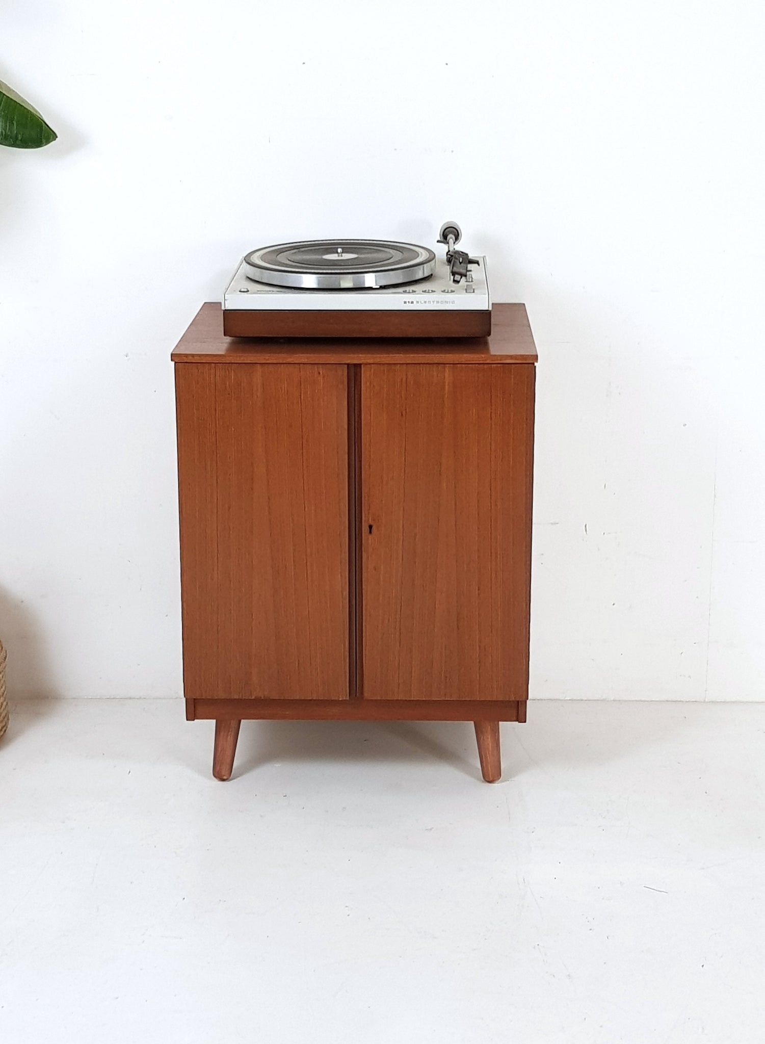 The cabinet has been made well and offers a good amount of storage space with lower dividers for vinyl and a shelf above.