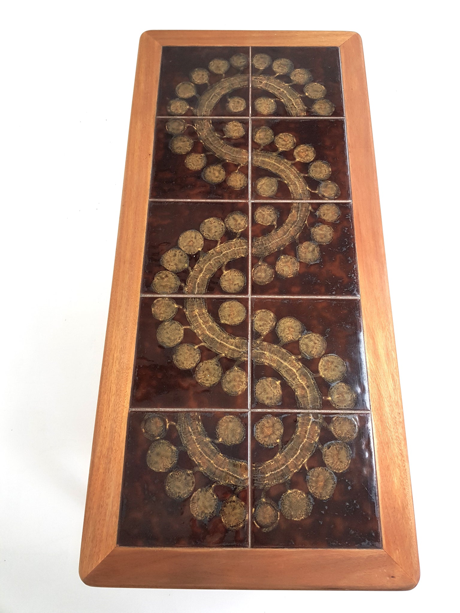 We love the design of this table with the handmade original glazed tiles, featuring an interesting geometric pattern.