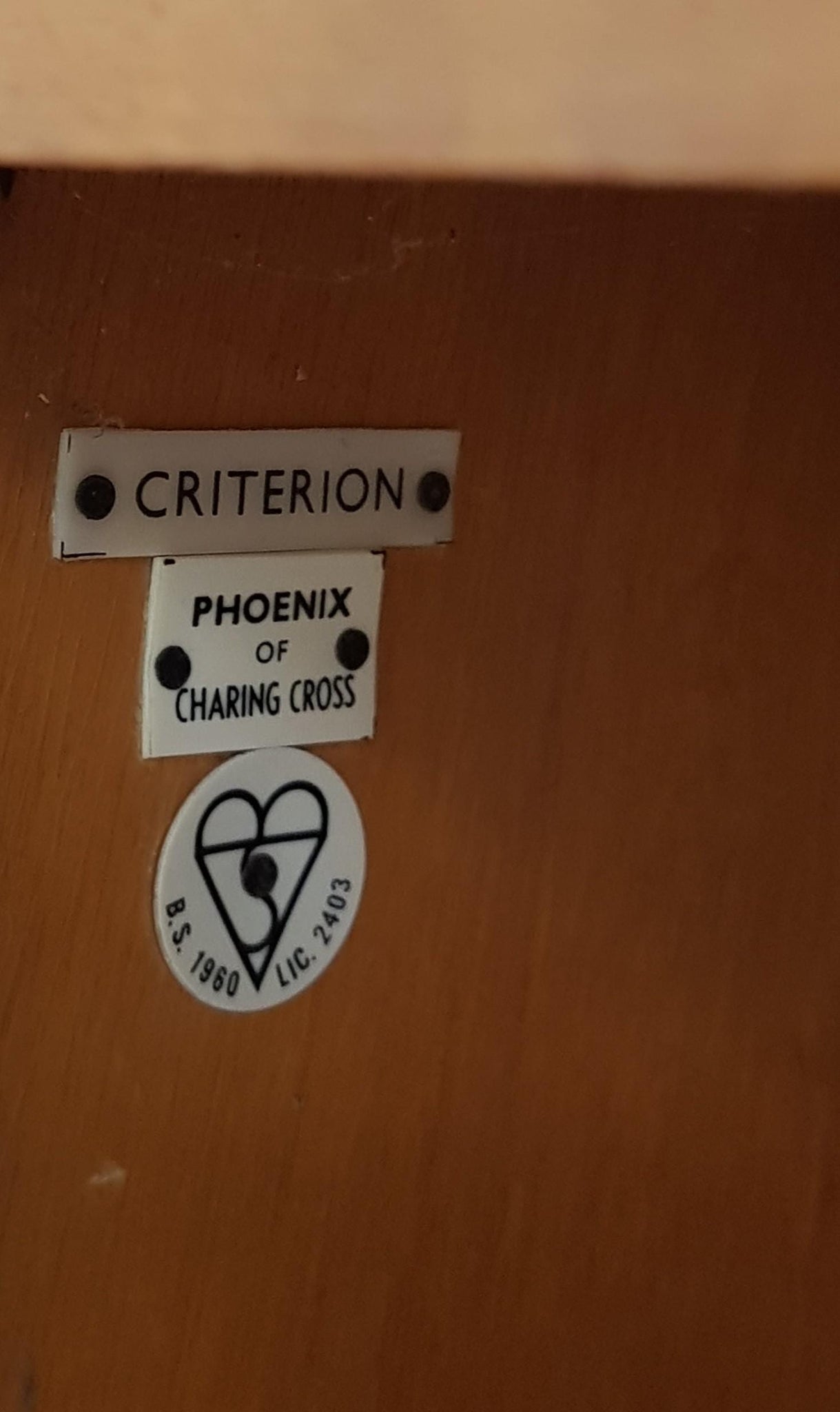 ORIGINAL VINTAGE DISPLAY CABINET BY CRITERION AND SOLD BY PHEONIX OF CHARRING CROSS