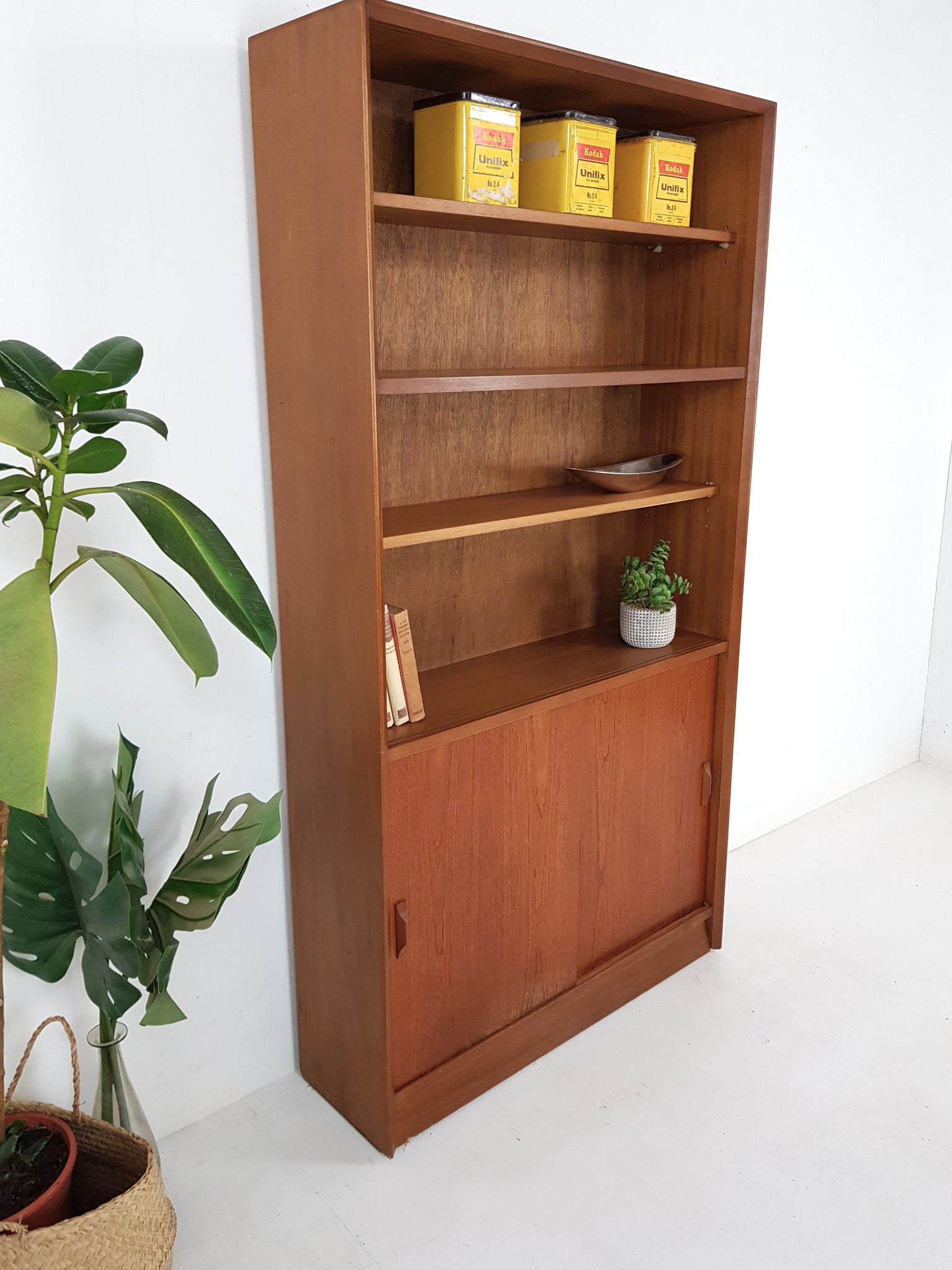 This is a beautiful shelving unit with a lovely colour and grain to the light teak.